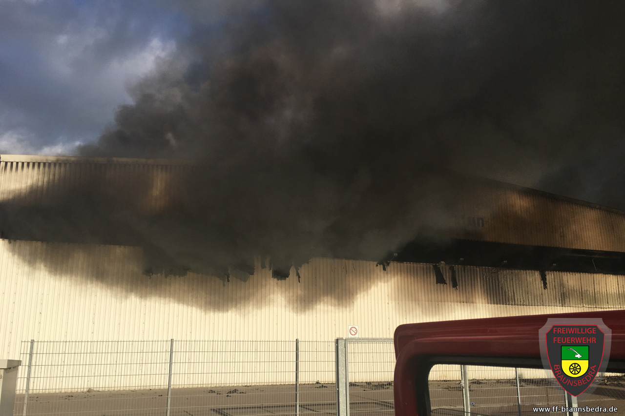 Großeinsatz in Lagerhalle – Dunkle Rauchwolken ziehen über Krumpa